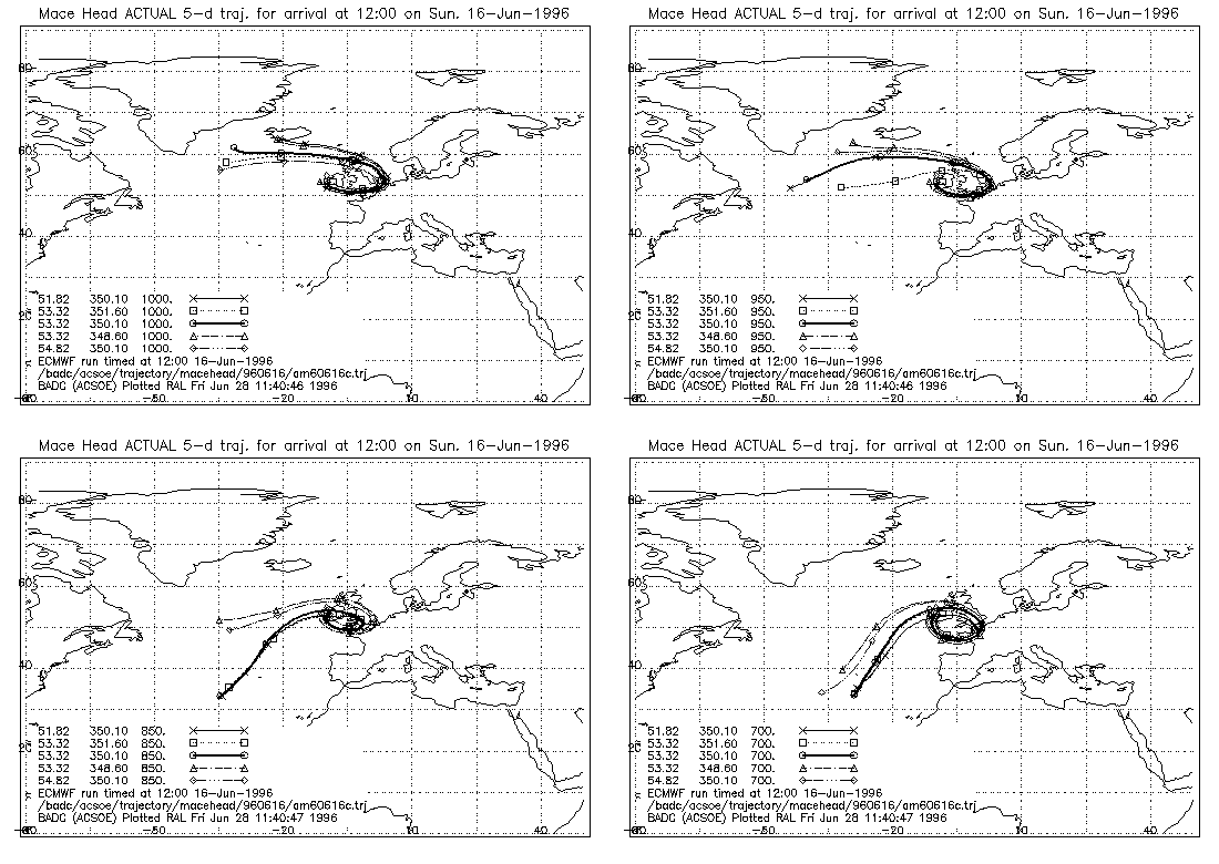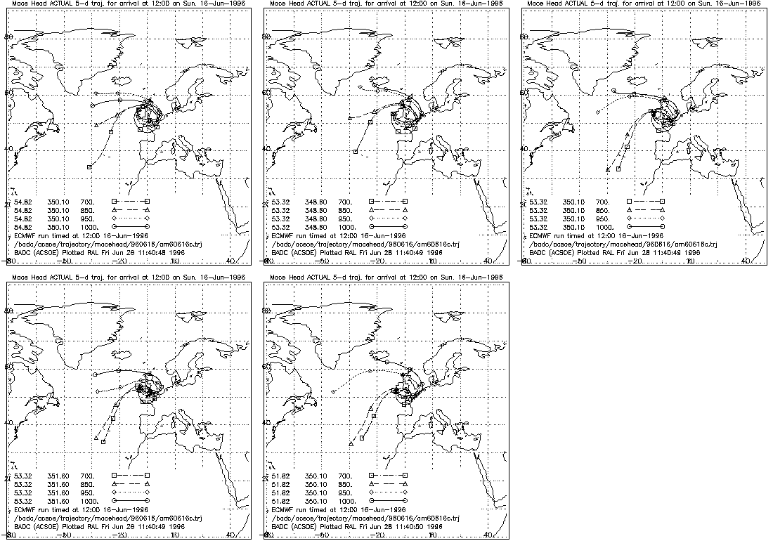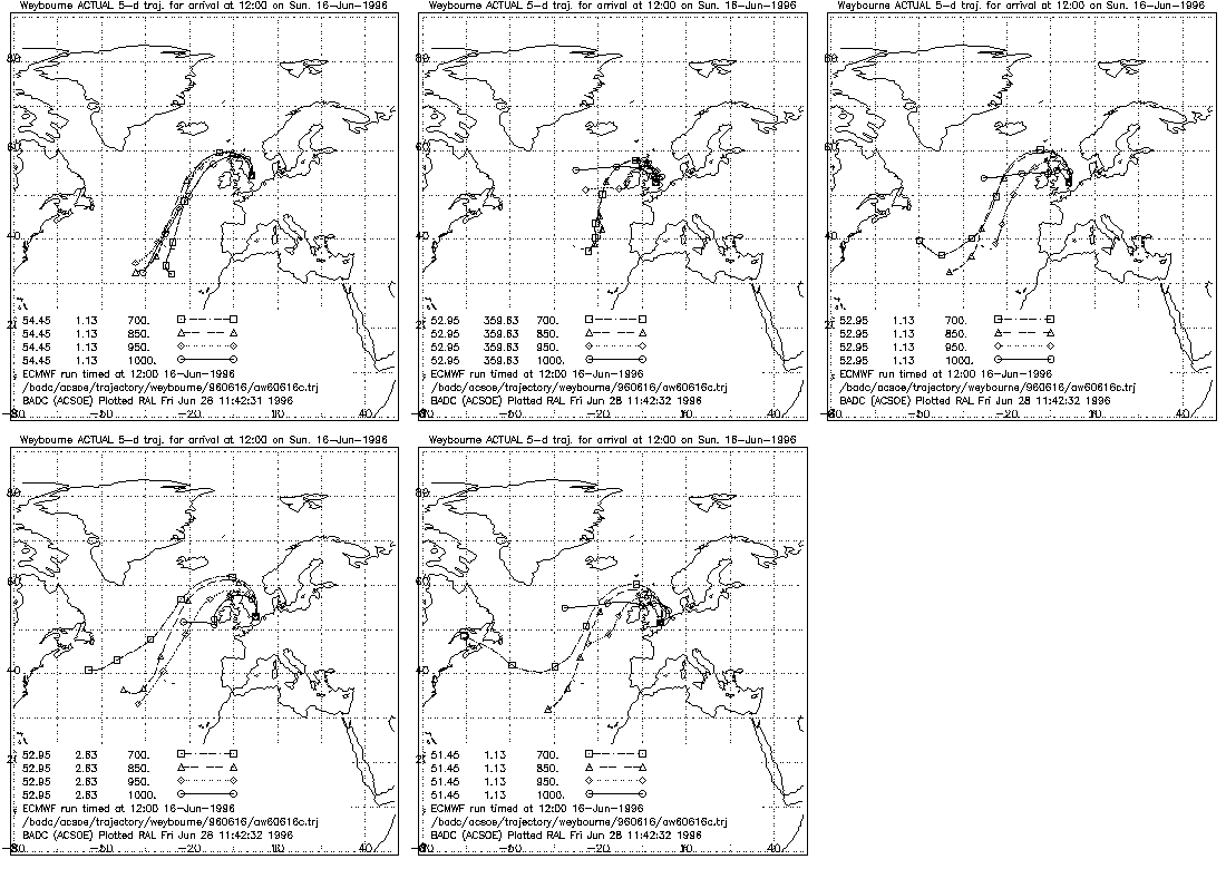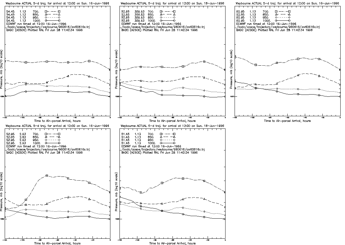 for the 1000mb pressure with trajectories arriving at the five