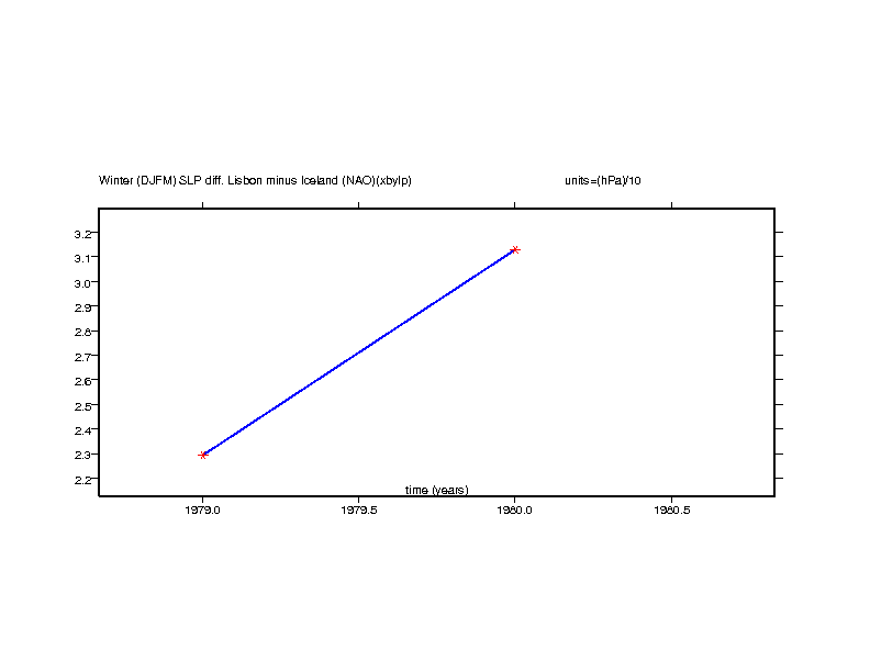 The SLP data presented here are NOT normalised if the length of the simulation is less than 10 years. Instead the time series plot simply shows the difference in pressure between Lisbon and Iceland.