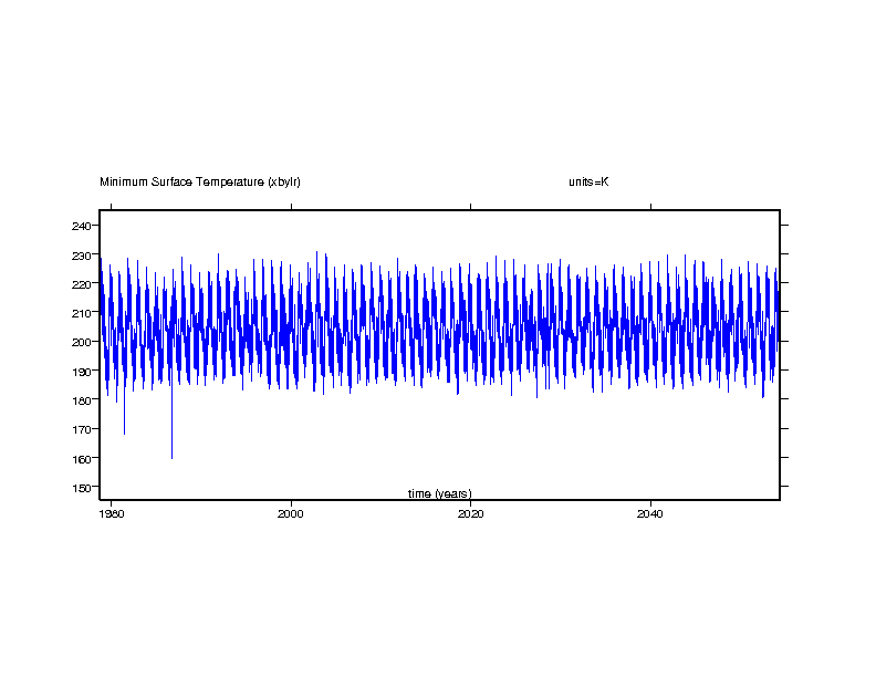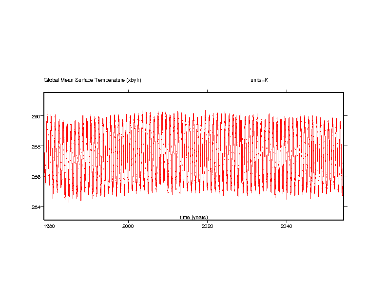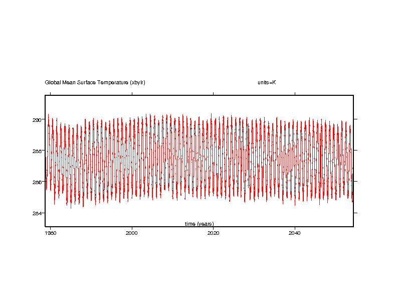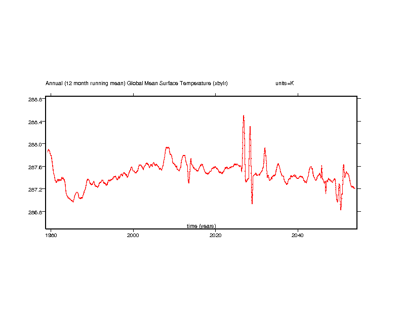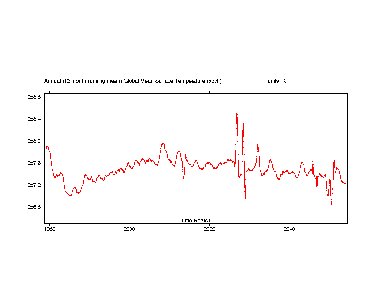 Annual (12 month running mean) Global Mean Surface Temperature (K)