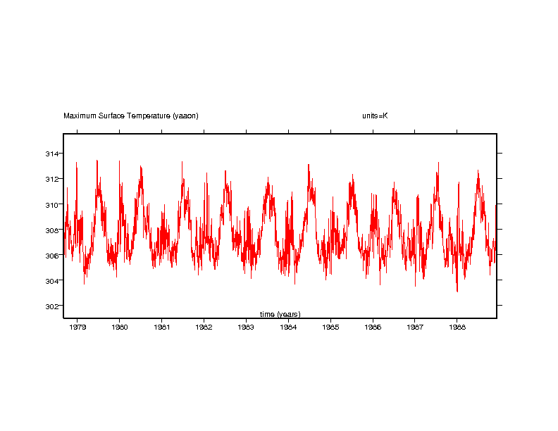 Annual (12 month running mean) Global Mean Surface Temperature (K)