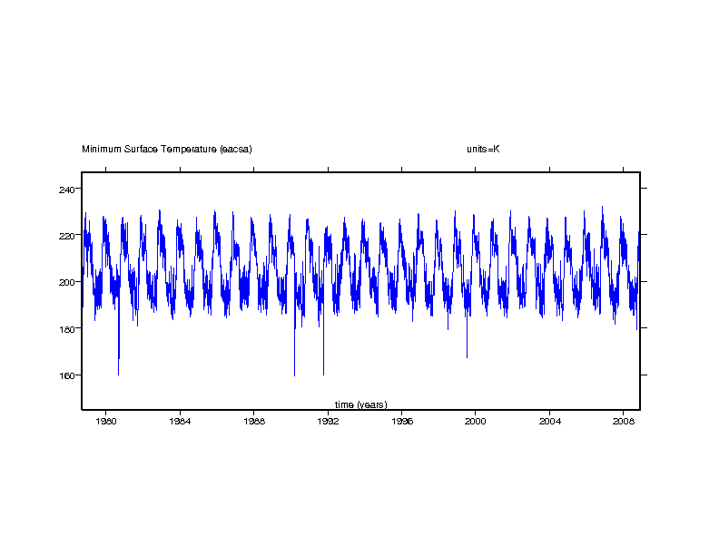 Annual (12 month running mean) Global Mean Surface Temperature (K)