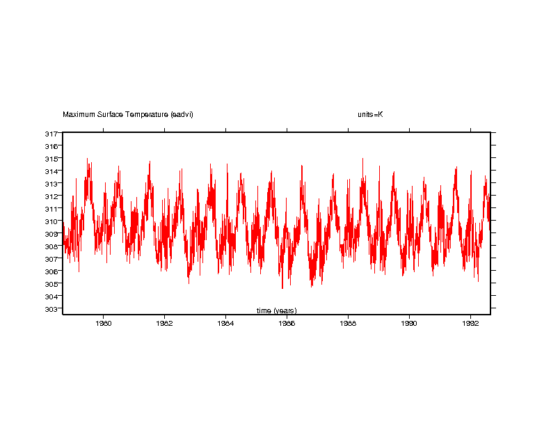 Annual (12 month running mean) Global Mean Surface Temperature (K)